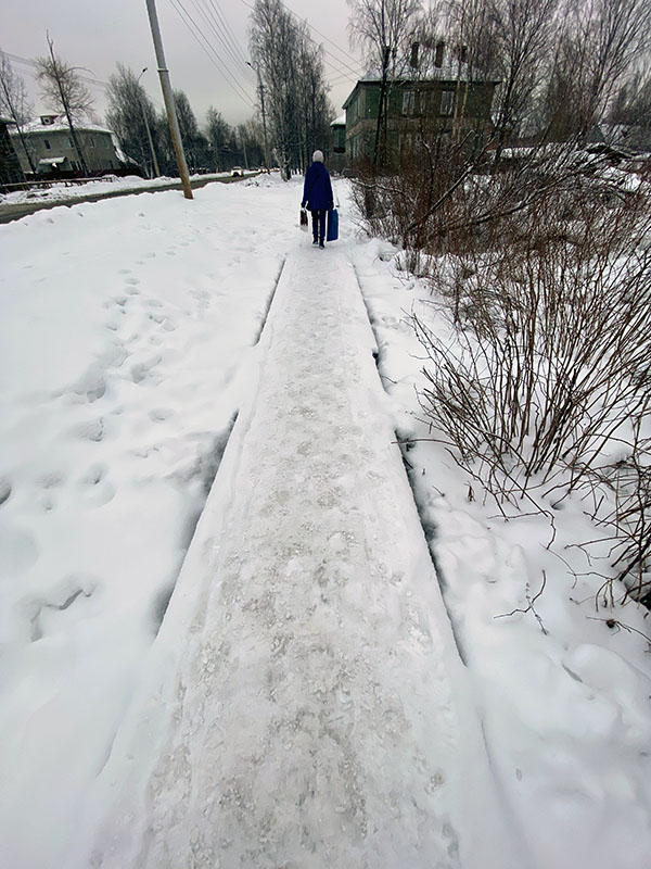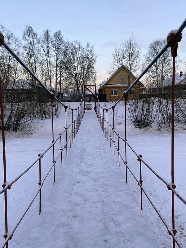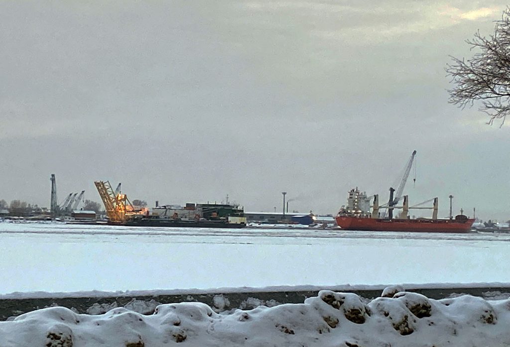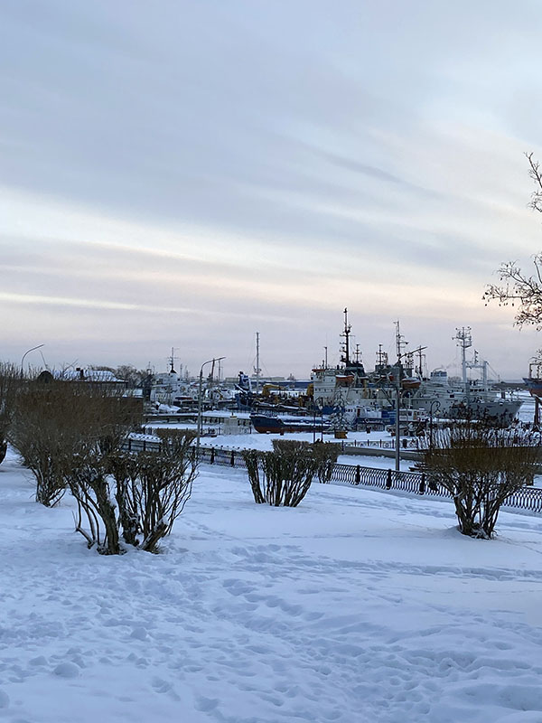 « Ce qui m’a surtout impressionnée, c’est le fleuve, la Sévernaya Dvina (Dvina du nord) qui se jette dans la mer Blanche. Le fleuve gèle pendant l’hiver, mais reste navigable grâce aux petits brise-glace qui créent le passage pour toutes sortes de bateaux, petits et grands. Je voulais voir le chouga, un mélange de glace et d’eau, une vraie soupe que les bateaux doivent traverser. Je l’ai vu ! Impressionnant !